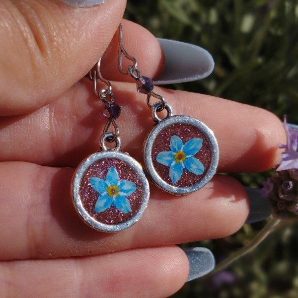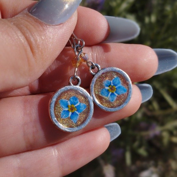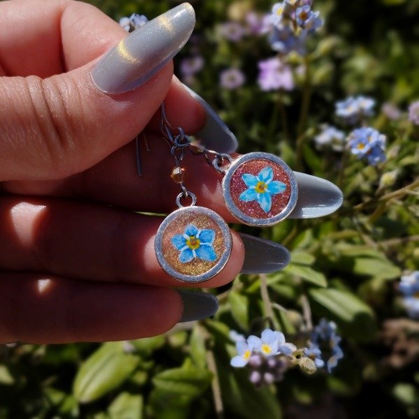 Aros de resina pintados a mano con el diseño encapsulado.