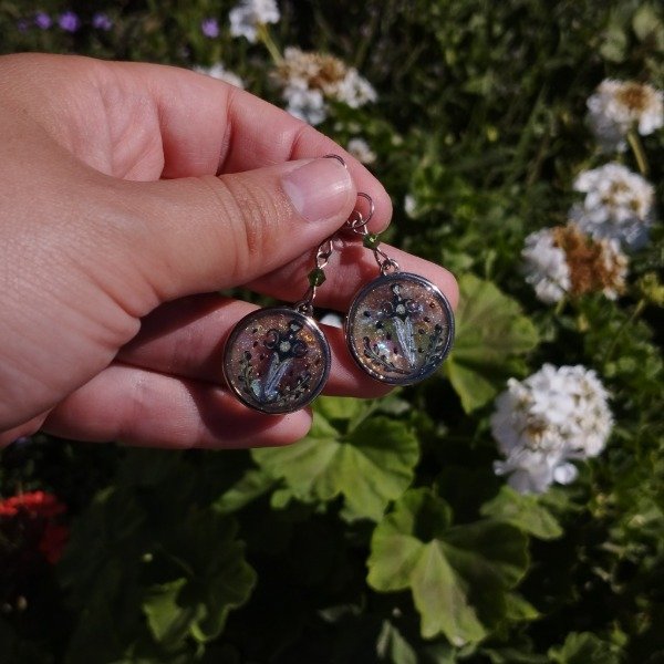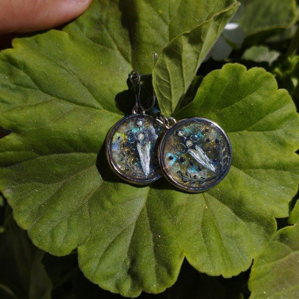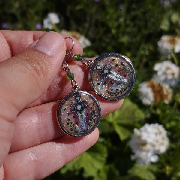 Aros de resina pintados a mano con el diseño encapsulado.