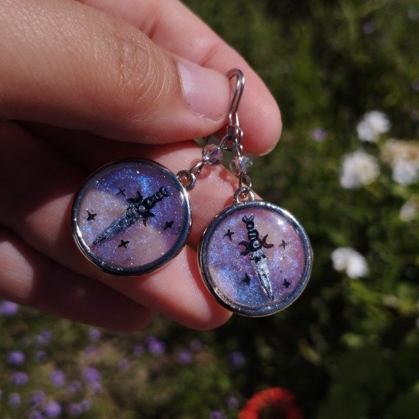 Aros de resina pintados a mano con el diseño encapsulado.