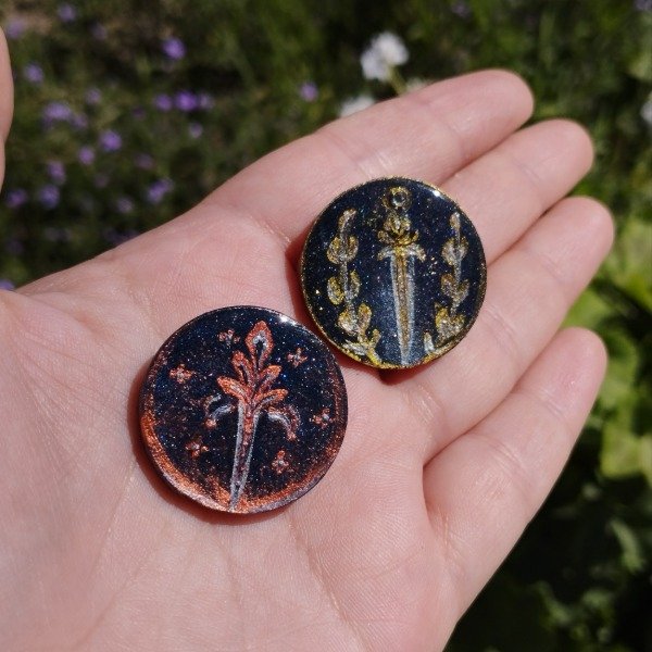 Prendedor con base de madera y ganchito de metal. Pintado completamente a mano, protegido con resina.