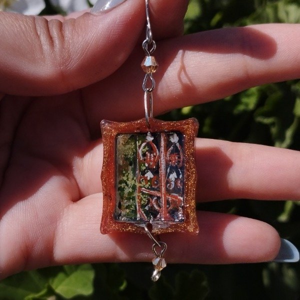 Aros con base de resina y ganchito de acero quirúrgico. Pintado completamente a mano, protegido con resina.
