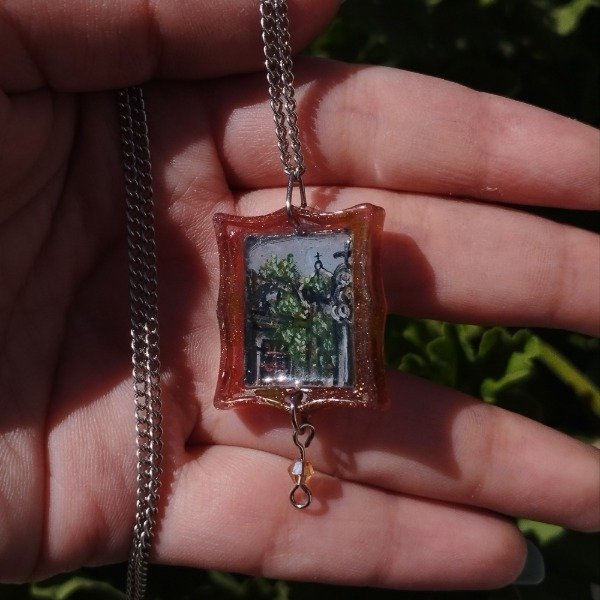 Aros con base de resina y ganchito de acero quirúrgico. Pintado completamente a mano, protegido con resina.