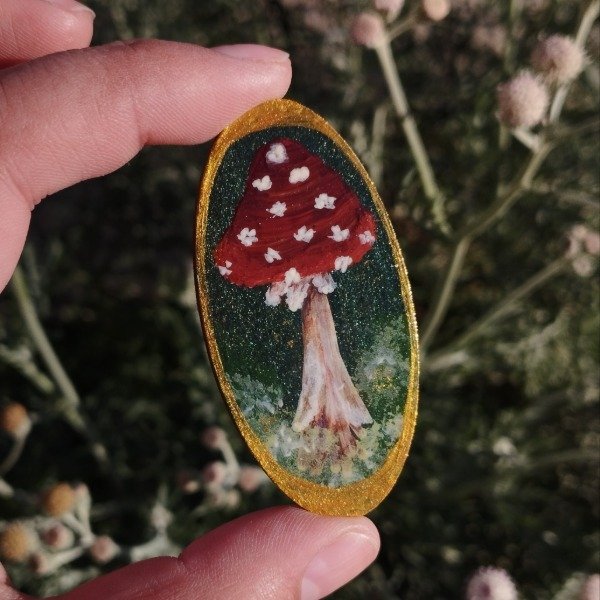 Base de madera pintada a mano y protegida con barniz con relieve. Iman por el lado de atrás.
