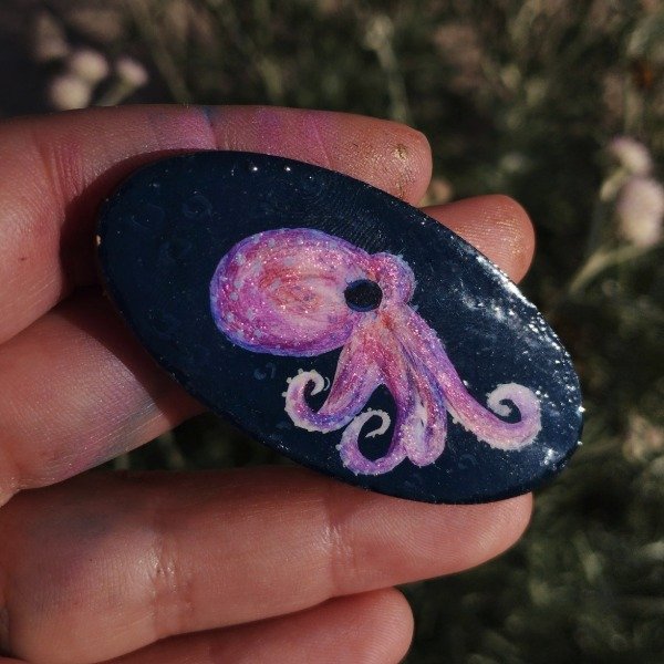 Base de madera pintada a mano y protegida con barniz con relieve. Iman por el lado de atrás.