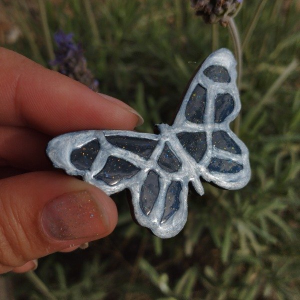 Base pintada de negro pintada con pigmentos brillantes y un sutil relieve brillante.