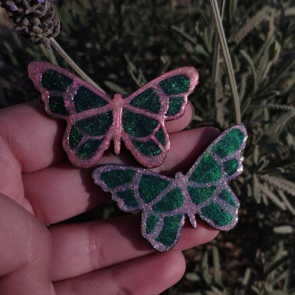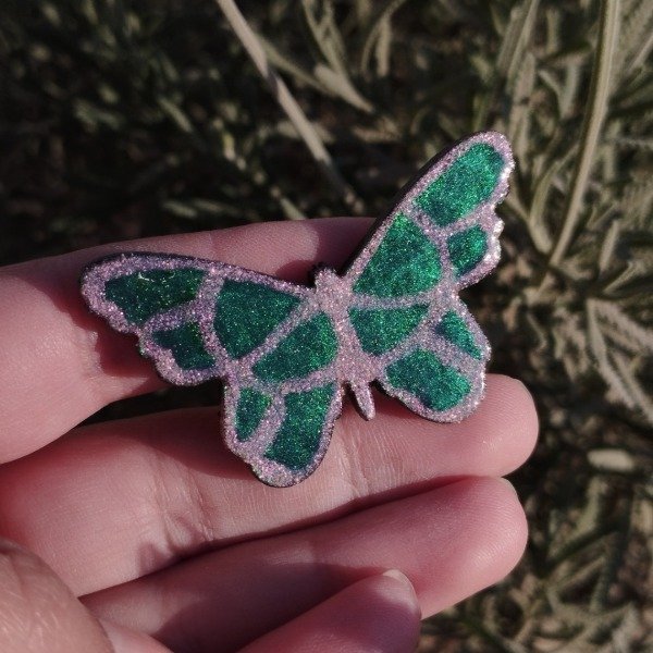 Base pintada de negro pintada con pigmentos brillantes y un sutil relieve brillante.