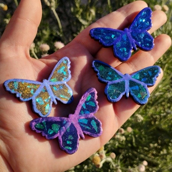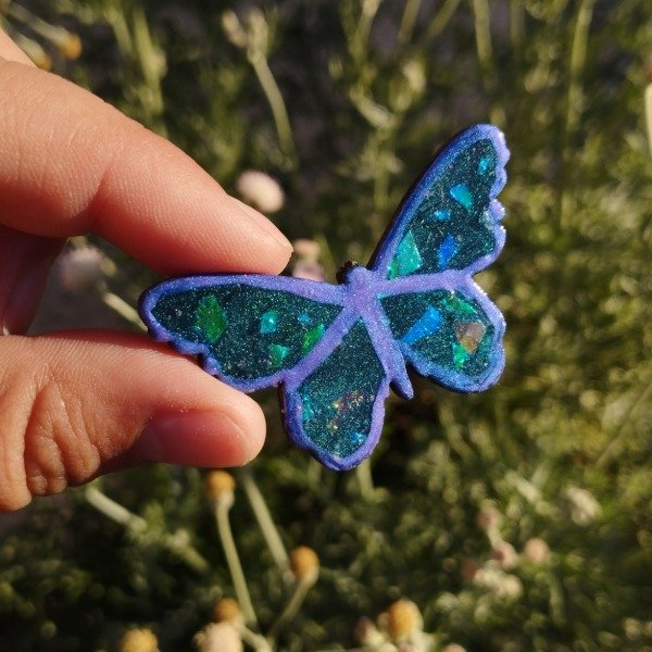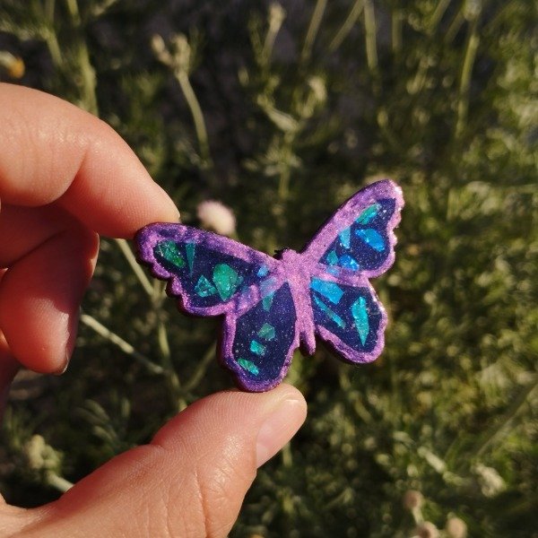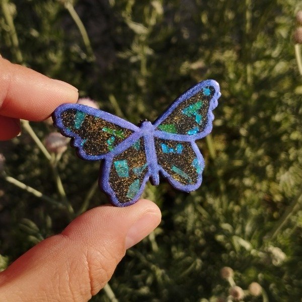 Base pintada de negro pintada con pigmentos brillantes y un sutil relieve brillante.