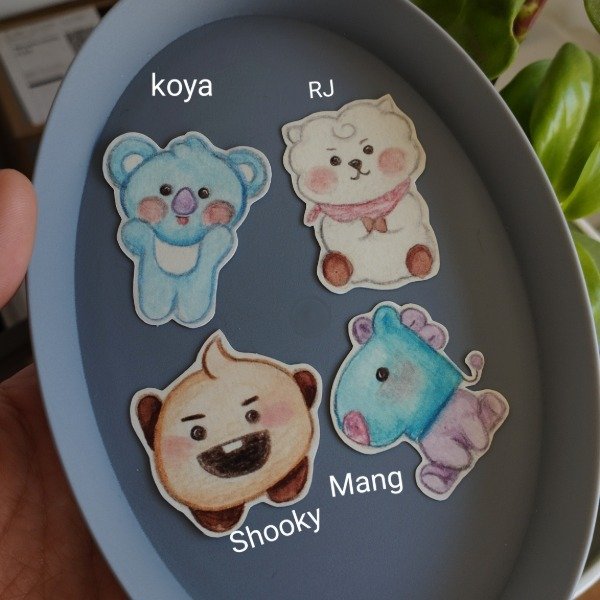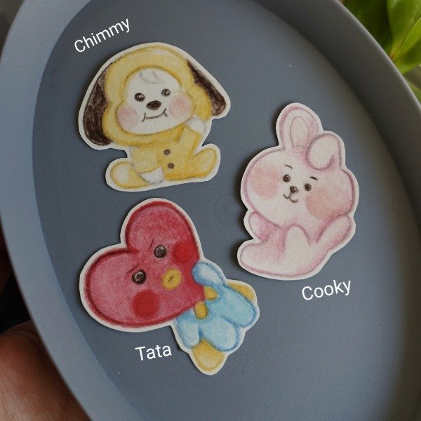 Stickers de vinilo con fanarts hechos por mi de BT21, a prueba de agua aptos termo.