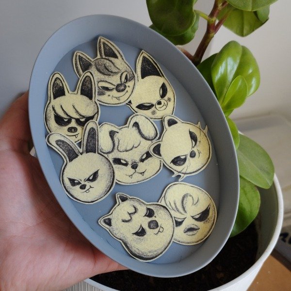 Stickers de vinilo con fanarts hechos por mi de darks Skzoo, a prueba de agua aptos termo.